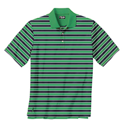 Ping Looper Polo - Green This shirt has the hand of mercerized cotton with the performance of moisture wicking polyester. PING embroidery on right sleeve and Mr. Ping at hem. P3 Fabric Technology. 70% mercerized cotton and 30% Performance Polyester. |