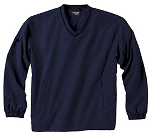 Ping Lay Up Pullover - Navy Classic V-Neck pullover utilizing our finest brushed twill. Contrast piping at neck. PW Technology. Wind/Water resistant. 100% polyester Microfiber. |