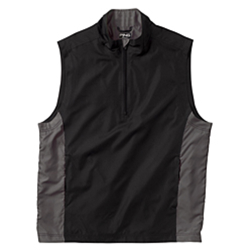 Ping Fade Vest - Black 1/4 zip vest that is perfect for any weather. Contrast side with contrast inside collar. PW Technology. Wind/Water resistant. 100% polyester Dewspo.