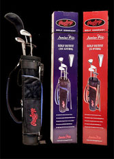"Rawlings Junior Pro 4/1 Set with Stand Bag Features • Combination Driver/Fairway Wood with Headcover • Two irons (mid & short iron) • Junior Flex graphite shafts • Blade design putter • Dual Strap Stand Bag If you have any questions about this product or would like to order by phone, please call us Toll Free at 888-733-8383. We look forward to hearing from you!" |