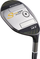 "Adams Speedline 9032Ti Fairway Wood The new Speedline 9032Ti is extremely long from the tee and easy‑to‑hit from the fairway. It has the fastest ball speed and is the longest fairway wood we have ever made. Features • Very low center-of-gravity: 22% lower than a standard fairway wood. • Crown is 25% thinner vs. standard fairway wood. • Titanium body is 40% lighter vs. standard fairway wood. • 80 gram Tungsten sole weights. • Hotter CT vs. traditional fairway woods—for faster ball speed. • Weight port for swing weight adjustments. 7 gram weight is redesigned for cleaner, lower profile look. • Launch partner with Aldila Voodoo NV7 graphite shaft. Specs Loft (deg.) Lie (deg.) Length (in.) Volume Swing Weight Hand Flex 13 58.0 43.5 0 460cc D2 R R,S,X 14.5 58.0 43.5 0 460cc D2 R,L R,S,X 18 58. 5 42.5 0 460cc D2 R R,S,X Shafts: 70-gram Aldila VooDoo NV Shaft Grip: Lamkin Crossline Tour Images" |