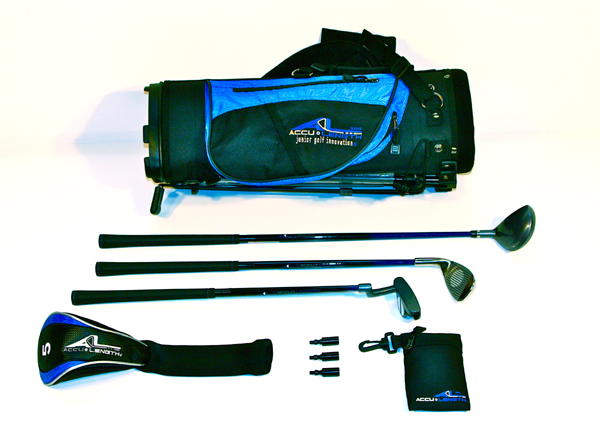 AccuLength Series 500 Series Junior Golf Set Accu-Length 500 Series (3'3" to 4')– Early success in golf breeds enthusiasm and fun for kids. Our 500 series clubs The Science Behind AccuLength Golf Clubs The Accu-Length golf club system was born out of the idea that many parents don't want to buy new golf clubs for their children every year. It has been a four-year process of designing, patenting, testing and launching the Accu-Length Expandable Junior Golf Club System. The technology in the AccuLength expandable clubs is the patented shaft spacer system that allows you to add one inch of shaft length to accommodate your child's growth. The average child grows two and a half inches per year, and professionals agree that for every two inches your child grows, an inch should be added to their club. So every year, your child gets a custom fit golf club. Accu-Length golf clubs have been exhaustively tested with a maximum of four spacers, so each club is designed to be used for up to five seasons. Additionally, each club has a "lock" at the top of the shaft that is designed to guarantee the grip will not unscrew or rotate during use. Head weight, loft and shaft flexibility are three very important elements to a quality junior golf club. Each set of Accu-Length golf clubs have been designed with proper head weights and lofts for the intended age group. As your child grows and their skills develop, the spacer system of the Accu-Length golf club actually stiffens the shaft, slowly easing the forgiveness of the club as the speed of your child's swing speed increases. With high-quality, scratch-resistant stainless steel heads, your child will enjoy years of golfing fun with clubs built just like Dad's. If you have any questions about this product or would like to order by phone, please call us Toll Free at 888-733-8383. We look forward to hearing from you! |