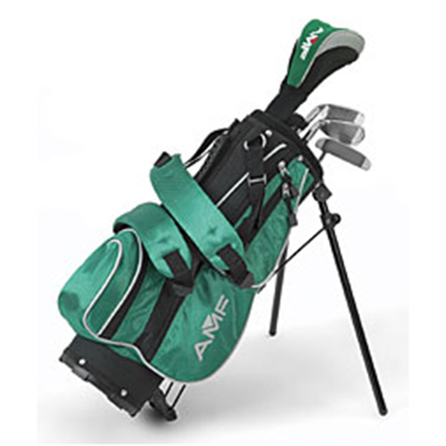 AMF 3-5 year old Series Boys’ and girls’ complete sets designed for junior swing profiles Features • Designed for ages 3-5 or heights 3'-3' 8" • Stainless steel #3 wood with graphite shaft • Oversize undercut stainless steel #7 iron with graphite shafts • Heel-toe weighted putter • Lightweight dual strap stand bag • Matching head cover |
