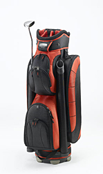"RJ Sports Bandon Cart Bag Features • 14 Way Dual Drop Organizer Divider Top • Two External Putter/Wedge Tubes • 6 Easy access pockets (One valuable, Two Garment, One ball, One Accessory) One thermal lined Cooler Pocket • Towel Ring, Glove Attachment, Umbrella Sleeve, Rain Hood • Stable Non-Slip Base • One year limited warranty" |