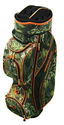 "Boggy Golf Mossy Oak Cart Bag Whether you are hunting for that big trophy buck or that ball you just shanked off into his habitat, Mossy Oak camo symbolizes an appreciation for mother nature and her beauty. Features • 14-way compressed nylon top • Multiple pockets store your golf gear • Insulated cooler pocket for beverages • Front carry handle eases lifting • Easy access water bottle holder • Water bottle included" |