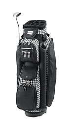 "RJ Sports Ladies Boutique Cart Bag Features • 14-Way Tiered Full Length Divider • Graphite Friendly Organizer Top • 5 Easy access pockets (One valuable, Two Garment, One ball, One Thermal Lined Cooler Pocket) • One detachable Pouch • Towel Ring, Glove Attachment, Tee Holder, Scorecard Holder, Pencil Holder, Umbrella Sleeve • Two External Oversized Putter/Wedge Tubes • 4 Lift Handles, See-Thru Rain Hood • One year limited warranty" |