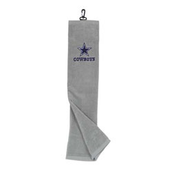 Dallas Cowboys NFL Embroidered Tri-Fold Towel This premium weight 16"x26" embroidered tri-fold towel, made of sheared 100% cotton velour, features a swivel clip attachment and is embroidered with the Dallas Cowboys NFL team trademark. If you have any questions about this product or would like to order by phone, please call us Toll Free at 888-733-8383. We look forward to hearing from you! |