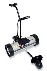 "Lectronic Caddy Dyna-Steer Remote All metal, dual, gear-driven gearboxes make it the toughest, most responsive remote on the market. Dynamic speed, turning, braking and stop/start functions. No need for reverse to complicate matters. DynaSteer's unique steering automatically selects one of two turning modes-course correction mode for normal fairway traversing, or zero radius tuning, for full, quick turns.    Features  • Enjoy hands-free, all-weather remote control to 150 yards.  • Lightweight, high-tensile strength, aircraft aluminum body weighs 20 pounds without battery  • Quick-tightening twist knob disconnects in seconds for easy, convenient storage. Takes up no more space than a conventional golf bag  • Superior sealed lead acid battery for long life and dependability  • Enclosed, corrosion-resistant body design, and hardened stainless steel drive axles allow quick, easy cleaning.  • Three-stage charger provides quick and accurate charging.  • Wide wheel base and hilltamer rear-wheel assembly provide spring-assisted stability on even the steepest inclines.  • Twin-motor, gear reduction drive units power hi-traction, flat profile urethane tires for exceptional hill climbing.  • Smooth-flow front wheel is computer-designed with a parabolic profile for the easiest of turns.  • The Dyna Steer carries a 2-year warranty and is backed by a nationwide network of more than 200 service centers."