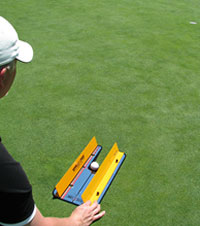 Step behind the Putting System and aim the center black line at the target. Practice a putt on path and train your eyes to see a precise line. Add a Spot On Laser to your Putting System to show the laser dot at the exact target of the system.