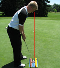 Look down at the ball. Your eyes should be directly over the ball on the center line of the mirror.