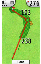 Garmin Approach G5 Golf GPS Give your game a boost of confidence with Garmin Approach G5 Golf GPS. The Approach G5 is a rugged, waterproof, touchscreen golf GPS packed with thousands of preloaded golf course maps. The Garmin Approach G5 uses a high-sensitivity GPS receiver to measure individual shot distances and show the exact yardage to fairways, hazards and greens. The Garmin Approach G5 displays and updates your exact position on stunningly detailed, preloaded course maps throughout the United States. | | The Garmin Approach G5 Golf GPS has a highly sensitive GPS receiver that pinpoints your position and removes guesswork from your game. And as you move, Approach automatically updates your position, so you'll always know your yardage. There's no subscriptions or setup fees, and the Approach G5 Golf GPS System is compliant with USGA rules. | | Garmin Approach G5 Golf GPS Features |  | | | Touchscreen: | yes | | Touch-targeting (touch target on display to see the distance to any point): | yes | | Manual pin positioning (tap and drag flag on green for precise yardage): | yes | | Course preview (see detailed, hole-by-hole preview): | yes | | Digital scorecard (keep score for up to four players): | yes | | Computer scorecard review (save and review scores on computer): | yes | | USGA and R&A compliant (legal under the Rules of Golf): | yes | | | | Physical & Performance: Garmin Approach G5 GPS |  | | | Unit dimensions, WxHxD: | 2.3" x 4.5" x 1.4" (5.8 x 11.4 x 3.5cm) | | Display size, WxH: | 1.53"W x 2.55"H (3.8 x 6.3 cm); 3" diag (7.6 cm) | | Display resolution, WxH: | 240 x 400 pixels | | Display type: | Transflective color TFT touchscreen | | Weight: | 6.8 oz (192.7 g) with batteries | | Battery: | 2 AA batteries (not included); NiMH or Lithium recommended | | Battery life: | up to 15 hours | | Waterproof: | yes (IPX7) | | High-sensitivity receiver: | yes | | Interface: | USB | | | | Maps & Memory: |  | | | Preloaded course maps: | yes (U.S. only) | | Course capacity: | unlimited | | | | Garmin Approach G5 Screen Shots |  | | | | |