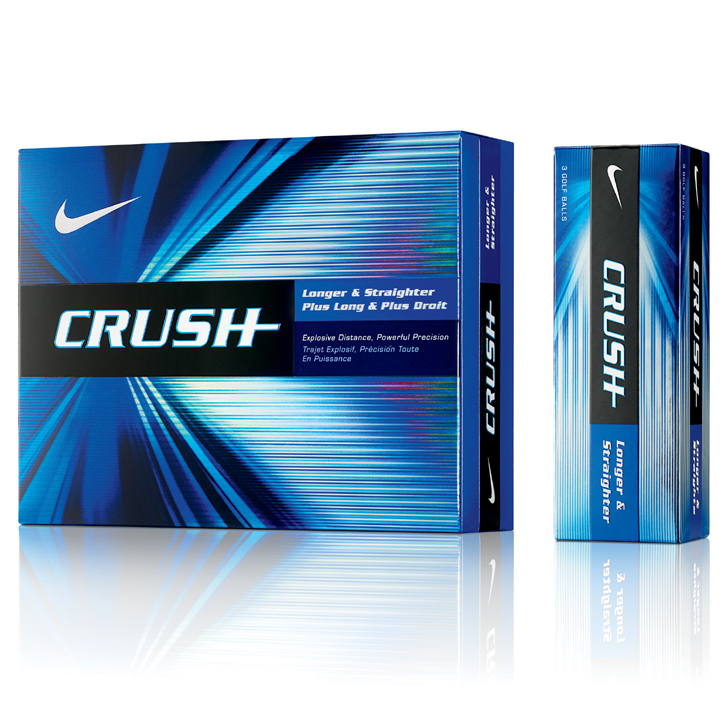 Nike Golf Crush Balls Designed to deliver explosively longer, straighter performance for a wide range of swing speeds. Crush combines a lower compression core and optimized cover design to reduce unwanted side-spin and maximize ball velocity for straighter, longer distance. |