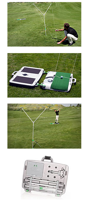 Utilizing a REAL golf ball, golfers of all levels can practice almost anywhere. Once hit, the ball travels up two parallel wires to a "Y" shaped pole and then returns to the turf hitting area instantly, eliminating the hassle of retrieving the ball.