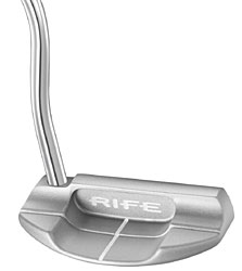 Guerin Rife 460 Mid Mallet This is another reintroduction/redesign of one of Mr. Rife’s first designs which he first brought to the PGA Tour back in 2000. The 400 Mid Mallet is a compact cavity back mallet that is symmetrical on both the heel and toe to create a very square look for a mallet. The neck has been eliminated to save weight, and when combined with the large rear cavity and scalloped rear flange, the heel-toe effect is maximized and greatly enlarges the sweet spot. Like all Rife putters the 400 Mid Mallet features Rife's patented RollGroove Technology. |