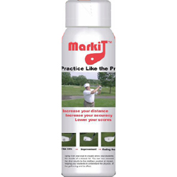 Increase Your Distance - Increase Your Accuracy Markit is a revolutionary spray which when applied to a clubface will indicate the impact position of the ball, and reveal the clubface position at the moment of impact. Markit allows golfers to see slight flaws in the clubface position at impact and helps the player to make swing corrections. Proper contact is essential for higher accuracy, longer distance and lower scores. Markit's unique characteristics allows golfer to see an extremely precise "dimple density pattern" even when used at a clubhead speed of 150 mph. Precise dimple patterns on the clubface will reveal one of the nine basic flight paths of the ball helping golfers to groove their swing, or when learning to shape their shots. Markit can also provide golfers with important feedback when used in putting.