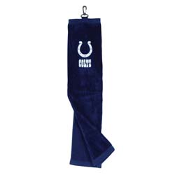 Indianapolis Colts NFL Embroidered Tri-Fold Towel This premium weight 16"x26" embroidered tri-fold towel, made of sheared 100% cotton velour, features a swivel clip attachment and is embroidered with the Indianapolis Colts NFL team trademark. If you have any questions about this product or would like to order by phone, please call us Toll Free at 888-733-8383. We look forward to hearing from you! |