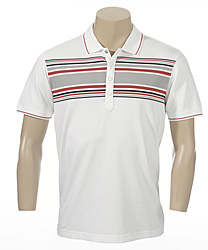 Ian Poulter Design Textured Stripe Shirt The stripe formation running across the chest highlights each of our Spring Summer color palettes perfectly. The ribbed collar and cuffs are trimmed with a contrasting color. |