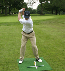 Izzo Golf Transfer Station Designed to help eliminate reverse pivot and improve weight transfer from back leg to front leg.