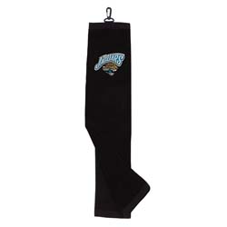 Jacksonville Jaguars NFL Embroidered Tri-Fold Towel This premium weight 16"x26" embroidered tri-fold towel, made of sheared 100% cotton velour, features a swivel clip attachment and is embroidered with the Jacksonville Jaguars NFL team trademark. If you have any questions about this product or would like to order by phone, please call us Toll Free at 888-733-8383. We look forward to hearing from you! |