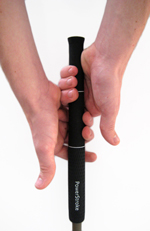 Macro Golf PowerStroke Full Swing Golf Grip Macro Golf introduces the PowerStroke , a USGA Conforming golf grip designed to bring the consistency and the power of a true One Plane swing to your game. With the most ergonomic shape of any grip in golf, PowerStroke provides measurably more tension free wrist flexibility than standard grips for smooth one plane full swing extension and firm left hand control,¦ Set-up/address through impact. Unlike conventionally tapered standard grips which are shaped only to counter the effect of centrifugal force, PowerStroke reflects the form of gripping hands and is designed to provide the specific physical grip requirements necessary for an efficient, and consistent, golf swing. The patented, three-tiered design of PowerStroke is a new, USGA conforming grip with a comfortable ergonomic shape that provides measurably greater tension free swing wrist hinge flexibility and extension than conventional grips. The pictures below illustrate Powerstroke’s greater non-dominant left hand full wrist extension at address in contrast to the prominent wrist angle of conventional grips. The PowerStroke shaft stays parallel and in one plane with the forearm with both relaxed fingers and in a firm grasp; the conventional grip however is parallel to and in one plane with the forearm only when held loosely in the fingers. In a firm grasp the conventional grip forms an angle at the wrist hinge (the Fulcrum Effect*) placing the club and the forearm in two distinct planes. During the golf swing with a conventional grip, re-gripping of the left hand from the milder finger pressure of the set-up to the firmer grip of impact often occurs, further triggering the fulcrum effect and the undesirable swing arc variation it causes. | Features |  | | | • | The full tension free extension of a repeatable One Plane set-up and swing | | • | The smooth wrist cock transition at the top | | • | A more powerful, resistance free full extension through release and impact | | • | Eliminates swing event spine angle changes and mid-swing re-gripping | | | Grip |  | |  Tier 1: The Butt-top section Tier 1 is 2.5"ť in length and has the smallest constant cross sectional diameter. The friction producing gripping surface pattern is the same as Tier 2 but different from Tier 3. The smaller diameter of Tier 1 is designed to be controlled in the firm grasp of the last two fingers of the non-dominant “left” hand. The constant diameter of Tier 1 results in a greater grasping wrist hinge flexibility than possible with conventional grips and along with its high friction surface pattern serves as a solid platform to eliminate the effects of swing torque and centrifugal force. Tier 2: The middle/transitional section Tier 2 is 3"ť in length and the gripping surface pattern of Tier 2 is identical to Tier 1. Tier 2 is a round, tapering transition separating the differing diameters of Tiers 1 and 3; the entire taper of the PowerStroke grip is concentrated here. The shape of Tier 2 ( together with Tier 1 ) act to eliminate the Fulcrum Effect, the unintentional lifting of the club head during the swing event caused by the fulcrum-like action of conventionally tapered grips in the tightening grasp of the closed left hand. This lifting action is clearly demonstrated by an examination of the images above. The ergonomic taper of Tier 2 also encourages a firm, confident left hand feel of control that stays constant throughout the swing event. Tier 3: The Lower shaft section: Is 4.5"ť in length and is straight in form. It has the largest constant cross sectional diameter of the three Tiers. The gripping surface pattern of this Tier is smoother and softer in feel than the gripping surface pattern of Tiers 1 and 2. The increased constant diameter and smoother feel of Tier 3, in contrast to the feel in the “left” hand when gripping Tiers 1 and 2, encourages a relaxed grip finger pressure in the right hand and helps to avoid right hand control and domination of the golf swing. | | |
