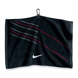 "Nike Golf Reactive Jacquard Towel Features • 16 in. x 26 in. Jacquard towel • Made of thick, absorbent, sheared 100% cotton velour • Center placement of the carabineer clip keeps towel off the ground • Swoosh design trademark printed " |