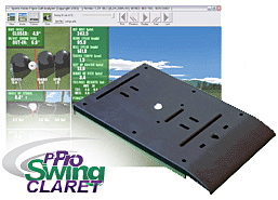 "P3ProSwing Claret Package The P3ProSwing Claret is our advanced golf simulator with dynamic swing analysis and more software options than the P3ProSwing SPORT. Additional software includes course play on the 18-hole Highlands National Golf Course, interface with Tiger Woods PGA Tour PC game by EA SPORTS and Practice Course. The P3ProSwing Claret system consists of a 9 in. x 14 in., extremely durable, high tech sensing platform and software that captures the information from 65 optical sensors and creates a visual representation of the swing data. You will receive incredibly accurate, completely objective, totally scientific analysis of each swing that you take. PGA Learning Center Technology PartnerEndorsed by the PGA Learning Center and used by teaching pros around the world — The P3ProSwing is quickly becoming a leading instruction tool, giving highly accurate data of your club before, at and after impact with the ball. Used with any club in your bag, the P3ProSwing Claret is a complete swing analysis and golf simulation system for golfers of all levels Dynamic Swing Analysis measures: • Club face angle • Swing path • Angle of attack • Swing tempo • Toe and heel height • Sweet spot deviation • Club head speed P3ProSwing Claret also features: • Driving Range • Putting Green • Putting Game • Fully Upgradeable Technology • Practice Course Mode • Highlands National 18-Hole Golf Course • PC Game Interface- allows interface with Tiger Woods PGA PC game by EA SPORTS • Accessories to get you started • P3ProSwingâ„¢Sensor Unit Features A Digital Picture of Your Swing Through The Impact Zone Using the P3ProSwing SPORT, you can see the point of impact and gain additional insight into your club swing and how you impact the ball. You will see visually if your swing path was square through impact, if your club face was square as you made contact with the ball, and what angle of attack your club was on at impact. You can also see where on the club face you made contact with the ball to see if you are using the sweet spot of the club and transferring the most energy you have generated with your swing to the ball. Detailed Analysis of Swing And Ball Flight Data In addition to visualization of impact, the P3ProSwing SPORT provides a full range of information that will help you understand the mechanics of your club through your swing and the resulting ball flight calculations. This information includes: Swing Tempo, Club Head Speed, Toe and Heel Heights, Distance, Right and Left of Path. See Your Shot From all the data captured from your swing, the ball flight of your shot is calculated and shown on a driving range or on the putting green. The ability of the P3ProSwing SPORT to predict the shape of the shot is unparalleled. The nuances of fade and draw, push and pull are all generated in a method that delivers a high degree of confidence in the display of the ball flight dynamics. Highland National Course Play Golf Anytime Play or practice golf when you want, where you want on the exciting Highlands National golf course. The P3ProSwingâ„¢ golf simulator software is so real it's like playing a real course. Highlands national is a 7,393 yard, 18-hole, par 72 championship golf course with 4 tee boxes for each hole. It is a mountain course with water hazards and extensive sand traps that will delight everyone. The state-of-the-art golf simulator graphics are astounding. You can fly over the course and follow the ball in flight. You can even see a replay of your shot. Tiger Woods PGA Tour PC game by EA SPORTS You can use your P3ProSwingâ„¢ to play EA SPORTS' Tiger Woods PGA Tour PC game. We have created an interface to the game that converts your swing data generated from the P3ProSwingâ„¢ into data used by the game. What’s Included: P3ProSwing SPORT Golf Swing Analyzer Unit P3ProSwing SPORT Software: - Swing analysis - Putting Green - Putting Game - Driving Range Sensor Pad Lubricant Lint Free Wipes Two Step Tape Sample Pack: - 5 Driver tapes - 5 Hybrid tapes - 10 Iron tapes - High intensity reflective tape strips - Reflective Strip Applicator guide Hosel Numbers Compressed Air (Per FAA regulations, compressed air is not included if unit is shipped via air.) Indoor-Safe Foam Ball Splinter Free Plastic Tees Rubber Friction Tee Power Supply USB Cable Fully Upgradeable Technology If you have any questions about this product or would like to order by phone, please call us Toll Free at 888-733-8383. We look forward to hearing from you!" |