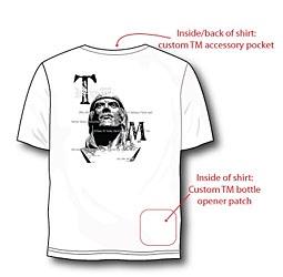 Travis Mathew Roman T-Shirts 100% Pima Cotton, tagless T-Shirt. Custom accessory pocket on inside back neck of shirt as well as a custom TM fabric applique on inside of shirt for opening a bottle without damaging the fabric. |