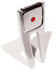 Sumi-G Divot Tool Small and smart, this divot tool is more than just sculpture. The innovatively engineered design has specially curved and angled prongs for easier and better ball mark repair. Its deceiving size has been ergonomically designed to fit comfortably in both hand and pocket. The grip holds a signature Sumi-G square ball marker on the back that is interchangeable with several other Sumi-G designs. Made of forged stainless steel, this piece will last a lifetime.