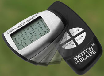 " SwitchBlade Golfer's Digital Assistant This compact unit keeps an 18 hole score for up to 4 players. If you have any questions about this product or would like to order by phone, please call us Toll Free at 888-733-8383. We look forward to hearing from you! "
