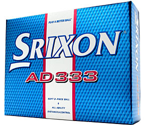 Srixon AD 333 The new and improved AD333 features a thinner cover and a larger core while maintaining the same enhanced aerodynamics. The enlarged, highly resilient Energetic Gradient Growth� core, made possible through thin-cover technology, provides greater ball speed, high launch, and optimal spin for increased carry and roll. The high-trajectory 333-dimple pattern with advanced aerodynamics produces a true, penetrating ball flight with a shallow landing angle in all wind conditions, delivering greater carry and additional roll. The soft cover provides improved feel and excellent control on approach shots
