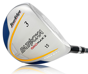 Tour Edge Geomax 2 Fairway Wood Designed to offer outstanding performance, the GeoMax boasts a Custom 450 Maraging Steel face and a hyper steel body. The face has been made ultra-thin to generate exceptional power and a quick launch for added distance from anywhere on the face. Just like the GeoMax 2 driver, the fairway wood has four weighted cavities in the rear of the sole. The cavities, along with additional internal weighting, lower the center of gravity and move it deeper in the club head for higher, longer, more accurate shots. In fact, the GeoMax 2's CG is 32% lower than the previous model. Further enhancing shot performance, this high-tech fairway wood has a shallower face than the original GeoMax. The lower profile makes the club easier to hit from tight lies and thick rough.