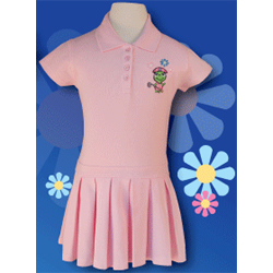 " The Littlest Golfer Golf Polo Dress - Girls What takes our baby pique polo over the top? Your littlest golfer in our Sandy polo dress! Our embroidered Sandy logo, double-needle stitching and kicky box-pleat skirt make this dress fun to wear. Stretch 93/7 cotton/spandex for comfort and shape retention. Infant and children's dresses available in white, light pink and navy. Sizes 6, 12, and 18 months; and Youth XS (2-4), S (6-8) and M (10-12). Ladies' dresses available in white, light pink and navy. Sizes XS (2-4), S (6-8), M (10-12), and L (14-16). " |