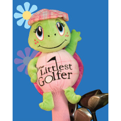 " The Littlest Golfer Plush Club Head Cover - Sandy Our Sandy club cover has the same great detailing as our plush toys and includes our embroidered tour logo. In fact, this cover is so adorable you might have a hard time keeping it on your club and out of admiring hands! Our golf headcover accommodates fairway woods and oversized drivers up to 460cc. The knitted sock is designed to fit club lengths from kids to adults. Ample padding ensures club heads are fully protected. " |