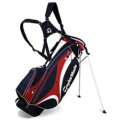 "TaylorMade Stratus Stand Bag The revolution has begun. The TaylorMade StratusStand bag is a blend of lightweight construction, functional pocketing, and comfort. Designed for the player who is looking for all the important features of a stand bag, but doesn’t want to break the bank. $f(""player"", {src: ""/videos/flowplayer/flowplayer.commercial-3.1.5.swf"", cachebusting: true}, { key: '#$450d1f2cfdf440be091', clip: { url: ""http://www.intheholegolf.com/videos/taylormade-stratus-stand-bag/taylormade-stratus-stand-bag.flv"", autoPlay: false, autoBuffering: true } }); Features: TaylorMade Stratus Stand Bag • Six-way top with full-length shaft dividers • Five pockets including velour-lined valuables pocket and insulated water bottle sleeve pocket • EVA foam ergonomically correct shoulder straps with velour lining • FAST accessory compatible • Nylon webbing bottom trunk handle • TPR Comfort Handle • Bungee towel cord • Anti-slip actuator • Ultra-Light nylon construction • Rainhood • 4.5 lbs." |