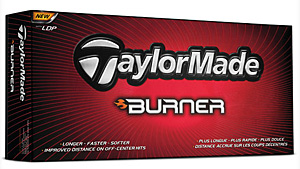 "TaylorMade Burner Long Distance Golf Balls Features • 2-piece construction delivers the soft feel of balata in a distance ball • Features Low-Drag Performance (LDP), several dimple designs arranged in a low-drag symmetry maintain lift on low-spin, off-center hits and minimize distance loss • 360 -dimple configuration limits drag for increased hang time and distance; and delivers extraordinary stability in crosswinds and headwinds • V-Core (Velocity Core) is phenomenally fast, yet incredibly soft • Iothane 61 cover is exceptionally pliable, resilient and durable Technology" |