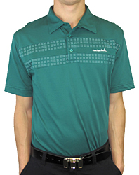 " Travis Mathew Pixel Polo Fabric: 60% Pima Cotton/40% Polyester Cut/Sew stripes across chest with DOT pattern inside cut/sews, script embroidery on left chest " |