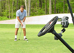 The Video Caddy The VideoCaddy is a device that combines video technology with two of the most important aspects of golf: The Swing and Course Management. Unlike videotaping at the driving range, the VideoCaddy allows you to record your swing where it counts most: on the course. By analyzing your round at home, you will be able to detect flaws in your swing using slow motion. Many pro�s use video to improve their game - now so can you! The VideoCaddy makes it easy to see the components of your swing. Address, weight transfer, body movement, swing path, arm angles, takeaway, follow through...all of the parts that you have worked on developing, but weren't sure how you were executing on the course.
