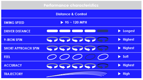 • Superior Control - Accurate flight stability created by a more solid inner core produces lower driver spin and higher spin in short irons for total control