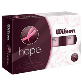 Wilson Hope Golf Balls (1 Dozen) The Hope brand represents more than $20 million in sales dedicated solely to the women golfer. The purchase of Hope golf balls equate to a contribution to The Breast Cancer Research Foundation's quest to achieve prevention and achieve a cure for breast cancer. The Wilson Hope golf ball is high-performance two-piece ball that provides the best blend in distance, durability and value. |