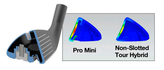 Adams PRO Mini Hybrid For players who prefer a more compact head shape. Features a sleek crown slot and Cut-thru Slot™ to create higher ball speeds and more forgiveness across the entire face. When tour pros talk, Adams listens. They made refinements to one of the most popular hybrid models on tour (original Idea Pro Black™ 9031) and also used similar characteristics of the SUPER 9031 hybrid to give better players the consistent distance control and penetrating ball flight that they need while maintaining the look and feel they want. Our patented Velocity Slot Technology on the crown and the Cut-Thru Slot technology on the sole produces exceptional ball speeds and higher launch compared to non-slotted hybrids and traditional long irons.
