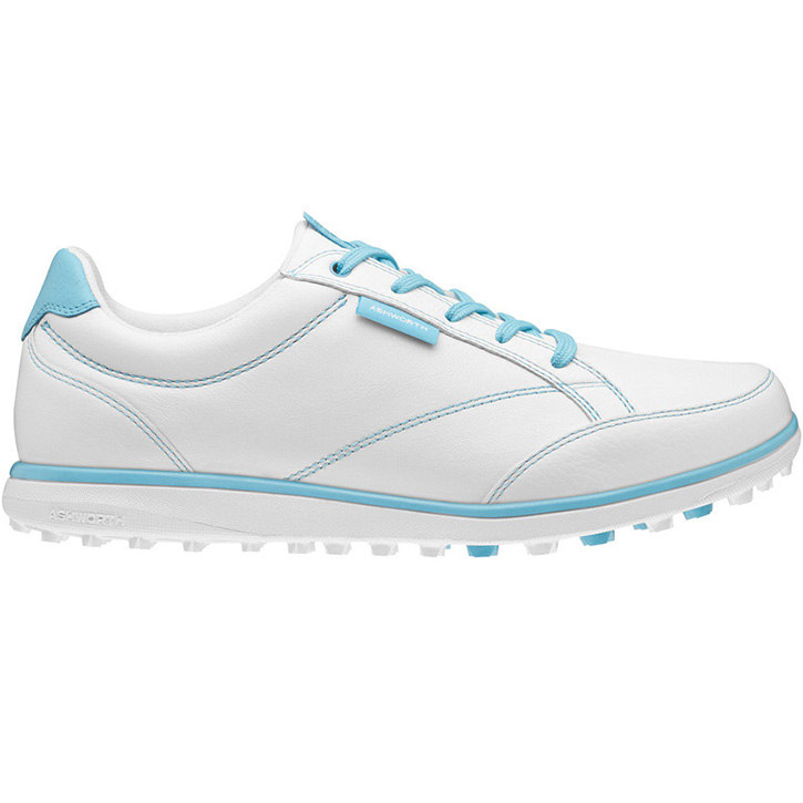 Ashworth Cardiff ADC - Womens White/BlueIntroducing the first ever women's Ashworth golf shoe, designed to deliver ultimate walking comfort both on and off the course. The new Cardiff ADC not only looks great, it features a premium leather upper, versatile spikeless outsole, and is built on an advanced comfort last that will make you want to wear them everywhere.