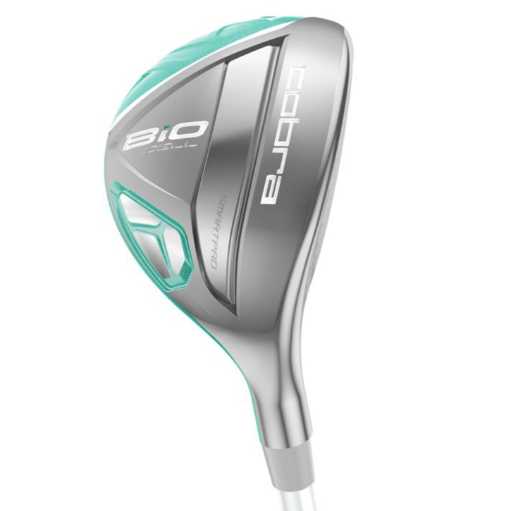 Cobra Bio Cell Womens Hybrid - AquaEasily gap your long game to optimize your distance with BiO CELL MyFly8™ Technology. The Women's BiO CELL Hybrids are equipped with MyFly8 with SmartPad™ technology featuring 8 loft options in each model with simple, one step, and adjustability to maximize distance and optimize yardage gaps. The Women's BiO CELL Hybrids have a forged thin, shallow high strength steel face inserts with a driver like construction creating more face flex, and more ball speeds delivering exceptional distance but still easy to get up in the air for ladies. BiO Cell Crowns and E9™ Face Technology remove weight from the crown and face for a lower CG-to-Neutral & high MOI, increasing the sweet zone for maximum distance and forgiveness.