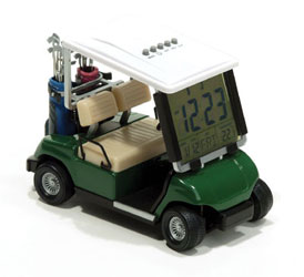 This 1:18 scale golf cart is very authentic looking. Displays time, date, temperature, and has a timer so you'll never miss a tee time again.