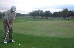 Laser T golf Training Aid The LaserT simplifies the putting swing by mapping the invisible putting arc into a visible straight line parallel to the target line.