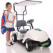 This 6V rechargeable Ride-On Golf Cart features forward and reverse motions, foot pedal accelerator, horn and back up warning buzzer and large realistic golf cart tires. The Golf Cart also features a golf bag, clubs, golf balls, tees, water bottle and holder. 6V Battery included. This vehicle is for the kids age 3 years and up with weight between 25 lb to 66 lb.