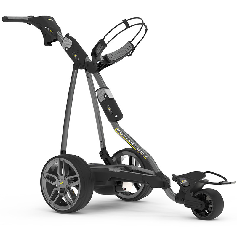 2020 PowaKaddy FW7s Lithium Electric Golf Push CartThe award winning New 2019 FW7s offers golfers a host of features. The model is packed with technology and features a STUNNING full colour 3.5 widescreen display, built-in calorie counter, distance measurement function, a powerful, near silent 230-watt motor and also comes with an increased 3-year peace of mind warranty. Key Features of the new PowaKaddy FW7s* Stunning 3.5 full colour widescreen display* Exclusive Honeycomb trims * NEW improved accuracy speed controller * NEW LCD backlight control system * Unique Plug n Play battery system * High performance low profile PowaFrame Chassis * NEW Thinnest, lightest and most powerful lithium battery on the market with Push Power button LED * Cutting-edge technology ensures your battery discharges less during each round of golf * Integrated USB charging port * ADF Automatic Distance Function * Powerful near silent 230w Motor * 3 Year Warranty on the Trolley * 5* Year Full Warranty on Lithium Battery Weight & DimensionsWeight without Battery 9.4kgWeight without (EBS) Battery 9.5kg Weight of 18 hole Lithium Battery 1.8kg Weight of 36 hole XL Lithium Battery 2kg Wheelbase 570mm Folded 385mm (H) X 860mm (W) X 570mm (D) Open 955mm (H) X 1285mm (W) X 570mm (D)
