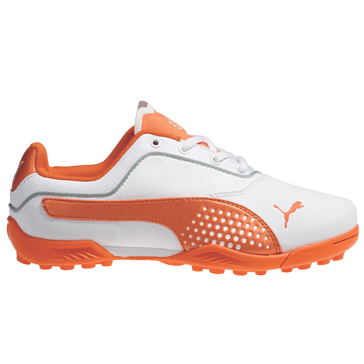 Puma TitanTour Junior Golf Shoes - White/OrangeDirectly inspired by tour pros like Rickie Fowler, these on-course kicks accommodate the style and performance needs of all future tour pros. Features: