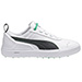 Puma MonoLite Mens Golf Shoes - White/GreenDesigned for the casual, cool golfer who rocks shorts on the course and has an attraction to (possibly an obsession with) athletic shoes. The Monolite features a premium, full-grain leather upper and suede lining for a soft feel and sophisticated look, an external heel counter for increased support and stability, and a super lightweight sole for all-day comfort on and off the course. Flex grooves in the forefoot offer increased flexibility and enhanced ground contact. The Monolite truly has it all. You'll never want to take it off – and luckily you don't have to. Features: