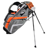 RJ Sports Ace Stand Bag | Features |  | | | • | 9.5'' - 14 Individual Full Length Divider Top, Weight 7.0 lbs | | • | 8 Easy Access Pockets | | • | Insulated Beverage Holder, Rubber lift handle | | • | Viewable Cell Phone / GPS Pocket, Comfortable Dual Strap | | • | Extra Padded Hip Area, Dual Drop Top | | • | Embroiderable Panel | | |