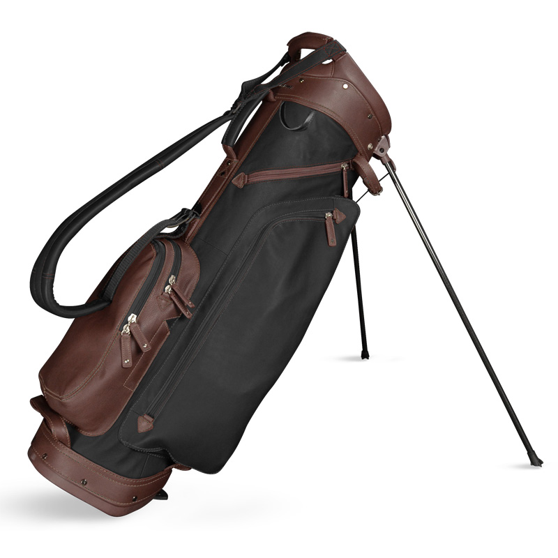 2020 Sun Mountain Leather Stand BagCombining tradition with technology, the Leather Stand Bag is sewn with the finest cow leather available. Additional features include authentic carbon fiber legs, a high strength-to-weight plastic top, hip-pad for carry-comfort, full-length box dividers and Sun Mountain’s patented Roller Bottom leg mechanism.